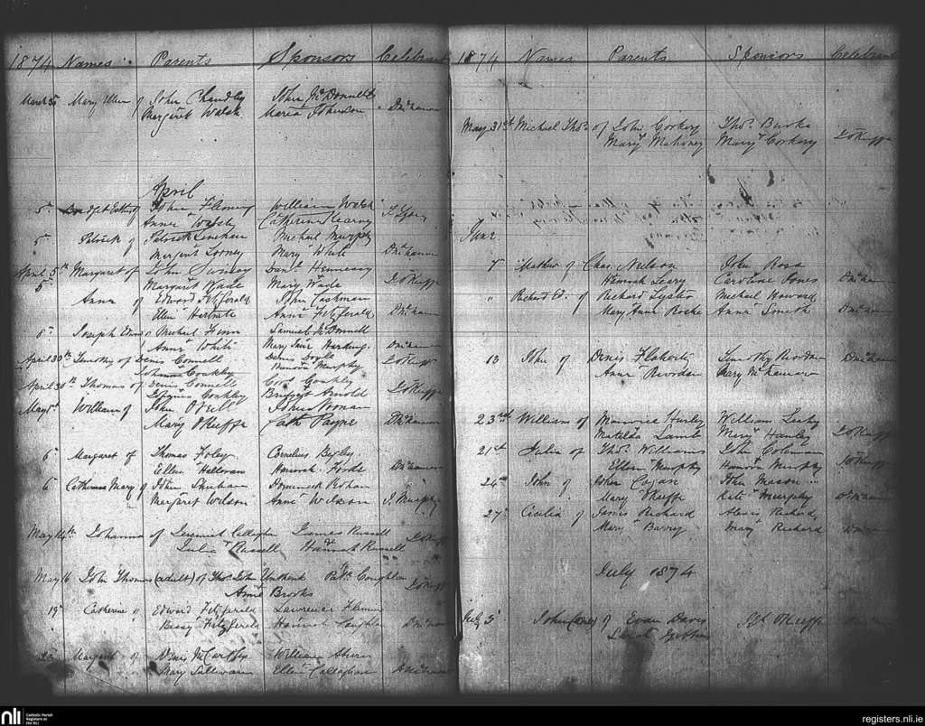 Passage West; County of Cork; Diocese of Cork and Ross. Baptisms, Mar. 1874 to July 1874