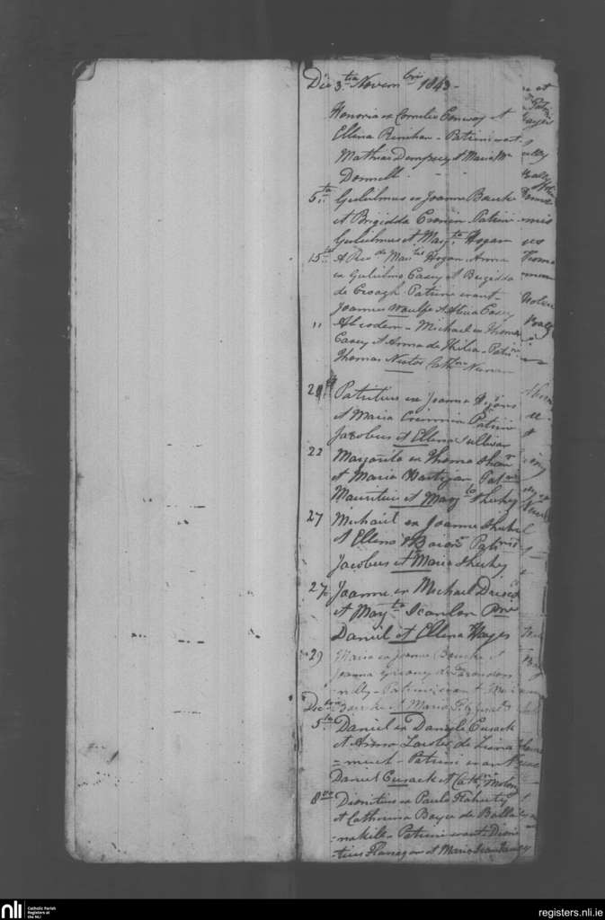 Croagh; County of Limerick; Diocese of Limerick. Baptisms, Nov. 1843 to Dec. 1843