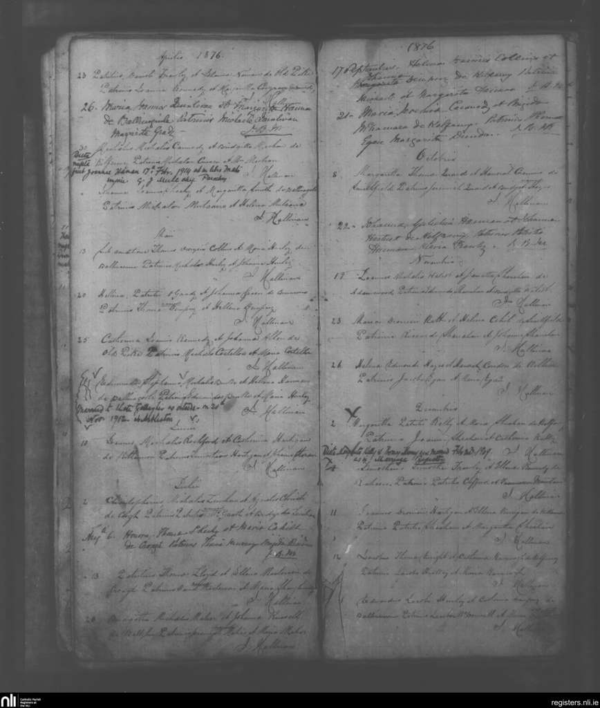 Croagh; County of Limerick; Diocese of Limerick. Baptisms, Apr. 1876 to Dec. 1876