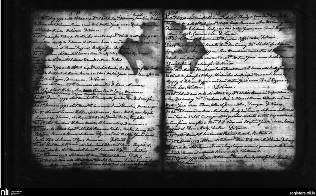 Croom; County of Limerick; Diocese of Limerick. Baptisms, Aug. 1772 to Apr. 1773