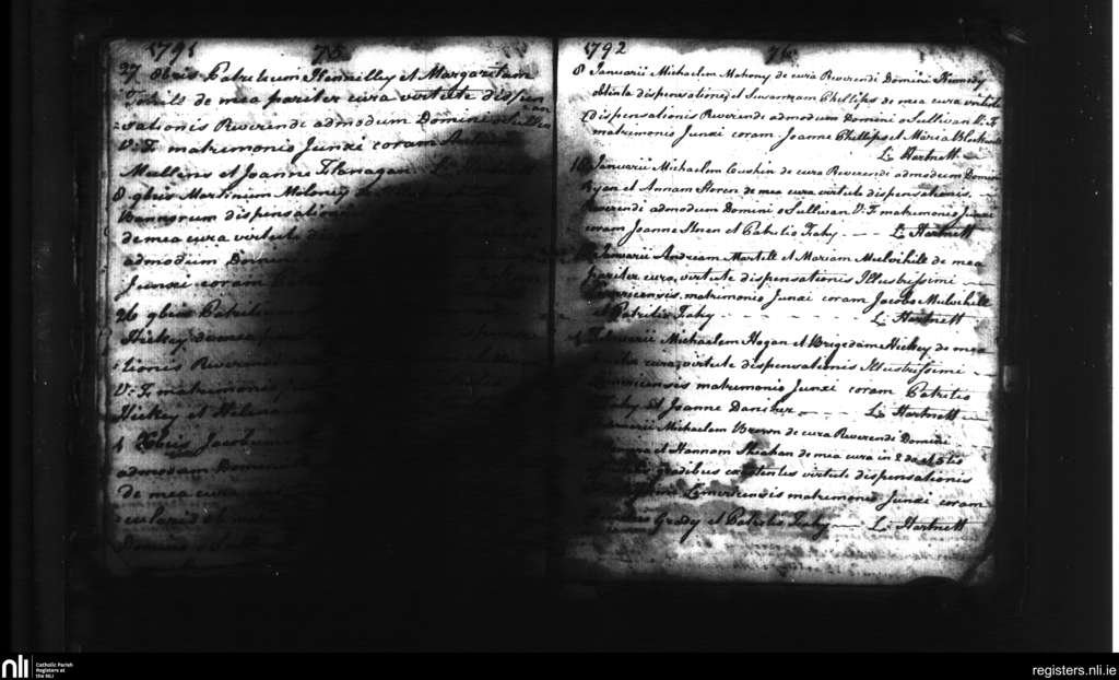 Croom; County of Limerick; Diocese of Limerick. Marriages, Oct. 1791 to Feb. 1792