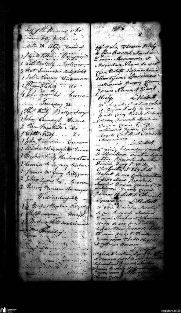 Croom; County of Limerick; Diocese of Limerick. Marriages, July 1806 to Nov. 1806