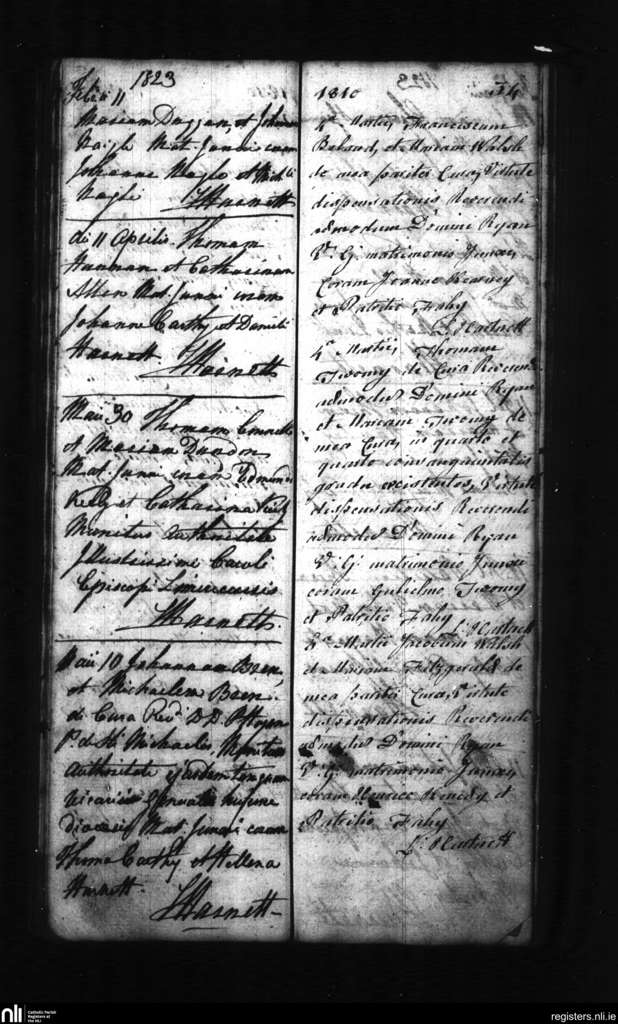Croom; County of Limerick; Diocese of Limerick. Marriages, Mar. 1810 to May 1823