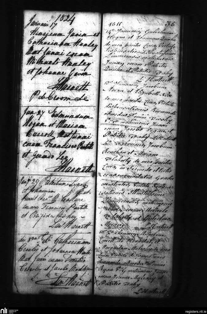 Croom; County of Limerick; Diocese of Limerick. Marriages, Jan. 1811 to Feb. 1824