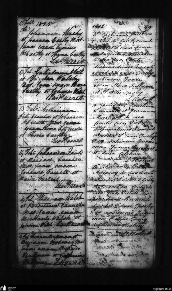 Croom; County of Limerick; Diocese of Limerick. Marriages, Feb. 1812 to Feb. 1825
