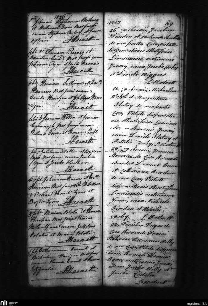 Croom; County of Limerick; Diocese of Limerick. Marriages, Feb. 1813 to Feb. 1826