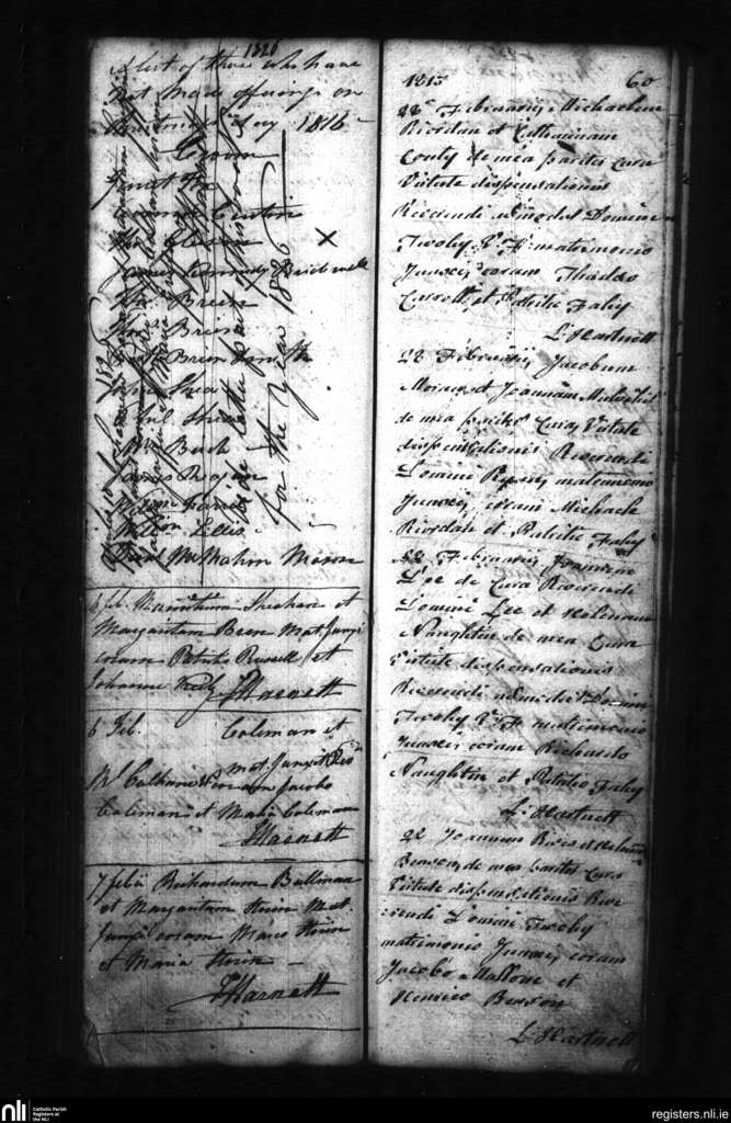 Croom; County of Limerick; Diocese of Limerick. Marriages, Feb. 1813 to Feb. 1826