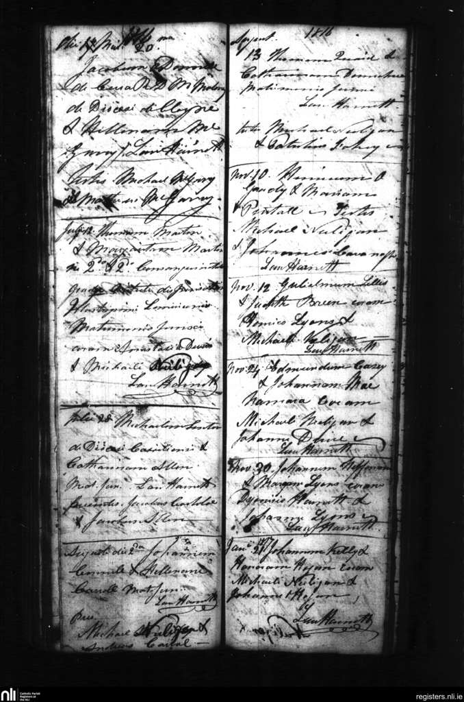 Croom; County of Limerick; Diocese of Limerick. Marriages, May 1816 to Jan. 1817