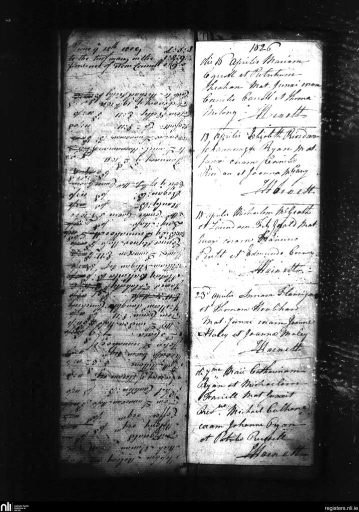 Croom; County of Limerick; Diocese of Limerick. Marriages, Apr. 1826 to May 1826
