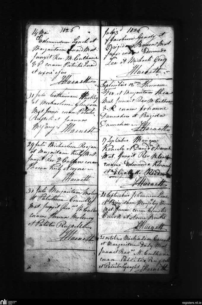 Croom; County of Limerick; Diocese of Limerick. Marriages, May 1826 to Oct. 1826