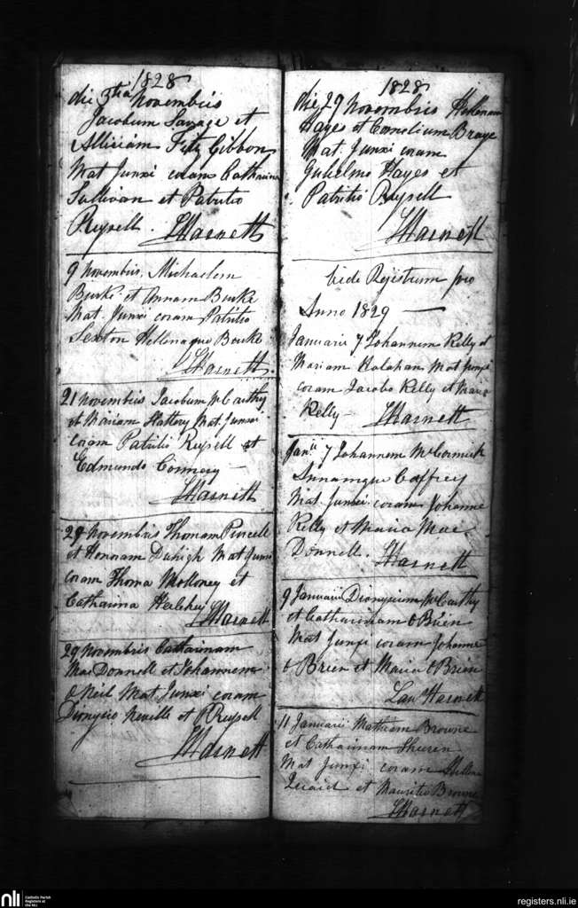 Croom; County of Limerick; Diocese of Limerick. Marriages, Nov. 1828 to Jan. 1829