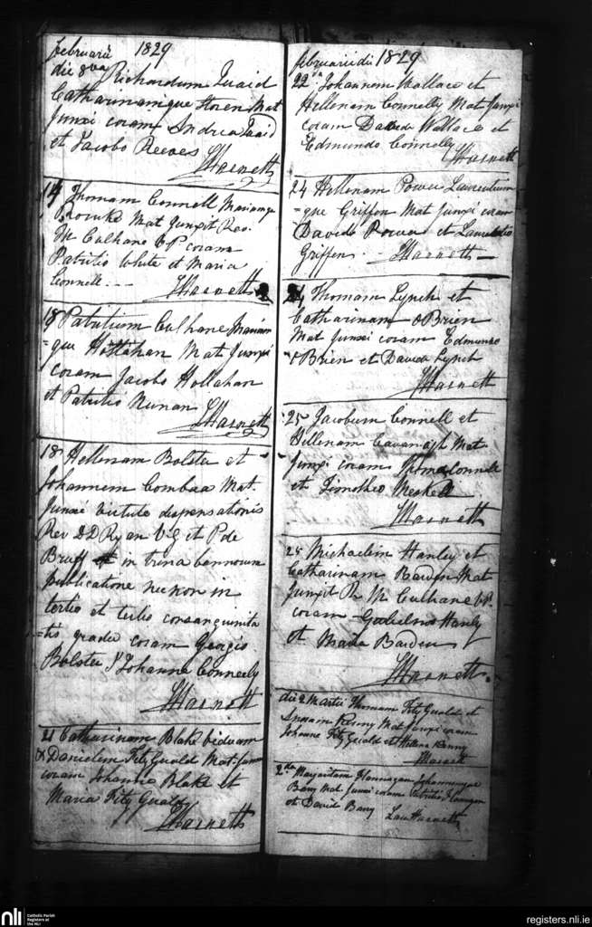 Croom; County of Limerick; Diocese of Limerick. Marriages, Feb. 1829 to Mar. 1829