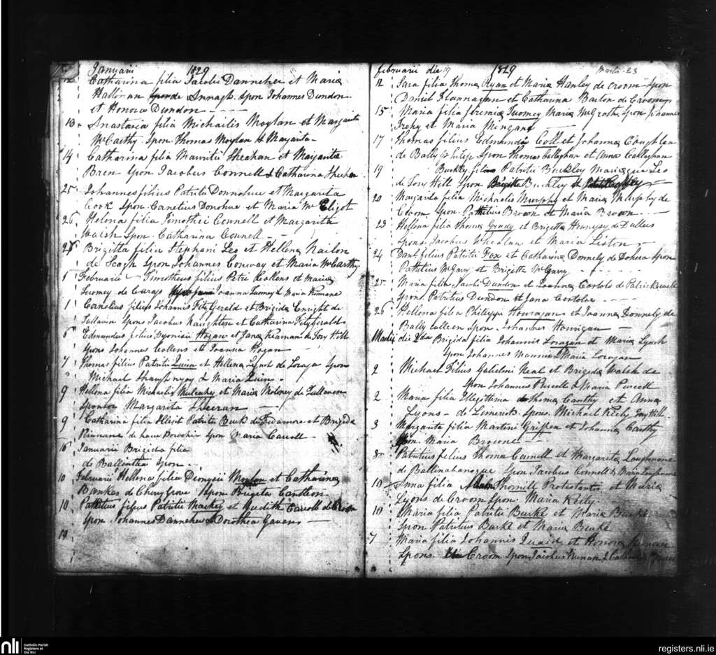 Croom; County of Limerick; Diocese of Limerick. Baptisms, Jan. 1829 to Mar. 1829