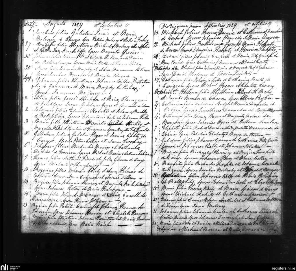 Croom; County of Limerick; Diocese of Limerick. Baptisms, Aug. 1829 to Oct. 1829