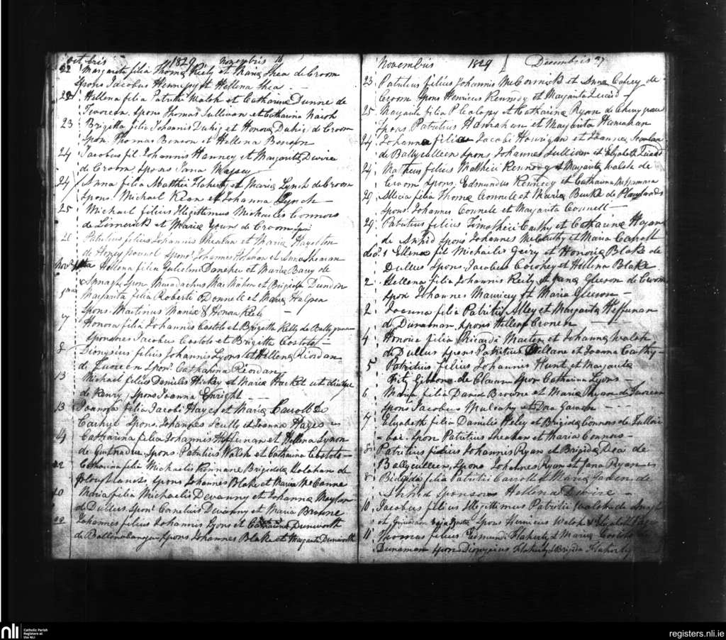 Croom; County of Limerick; Diocese of Limerick. Baptisms, Oct. 1829 to Dec. 1829