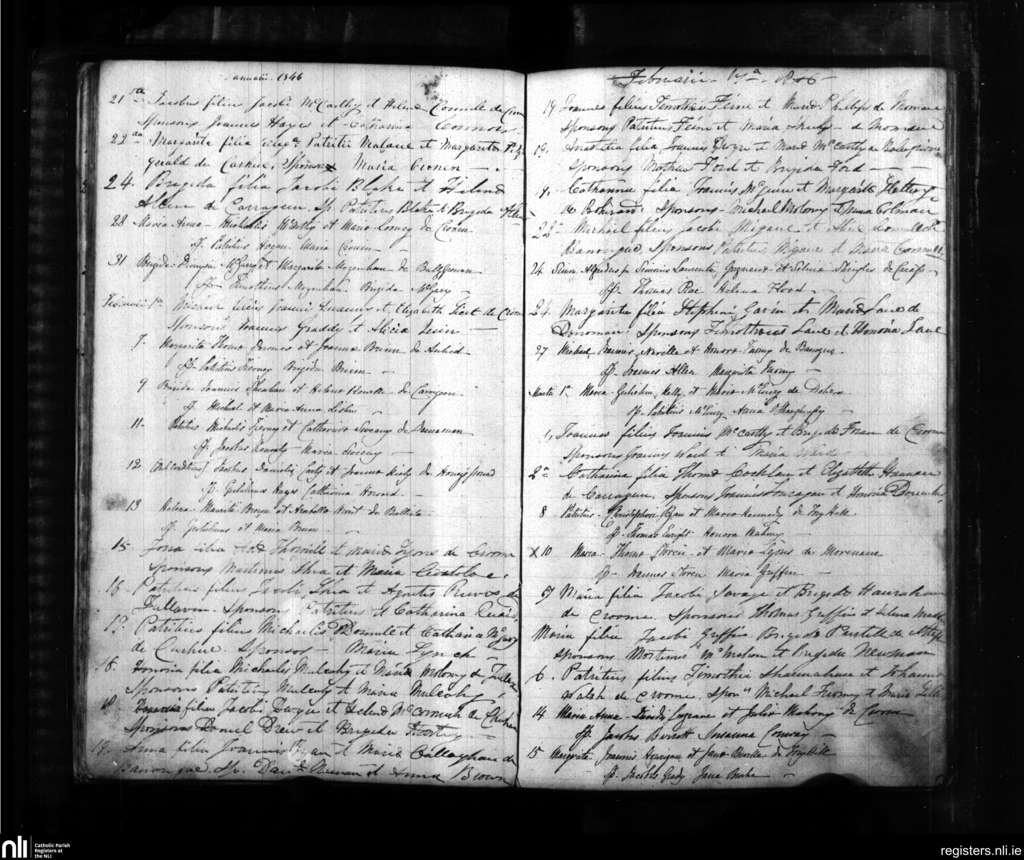 Croom; County of Limerick; Diocese of Limerick. Baptisms, Jan. 1846 to Mar. 1846