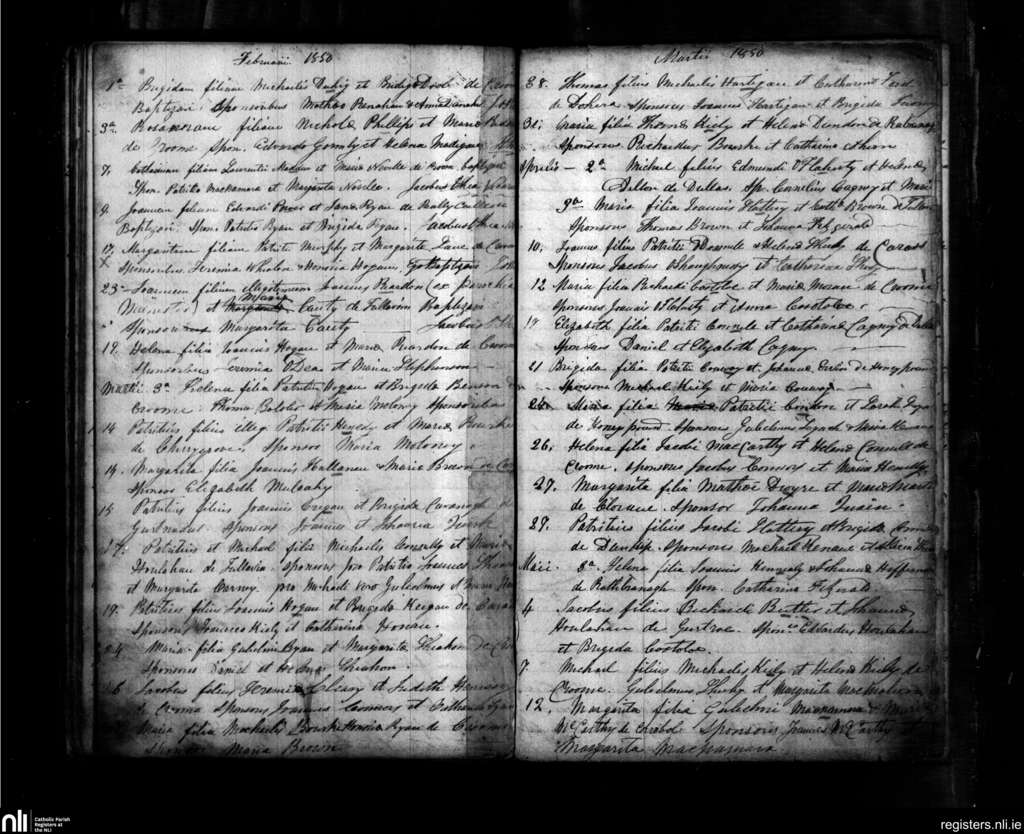 Croom; County of Limerick; Diocese of Limerick. Baptisms, Feb. 1850 to May 1850