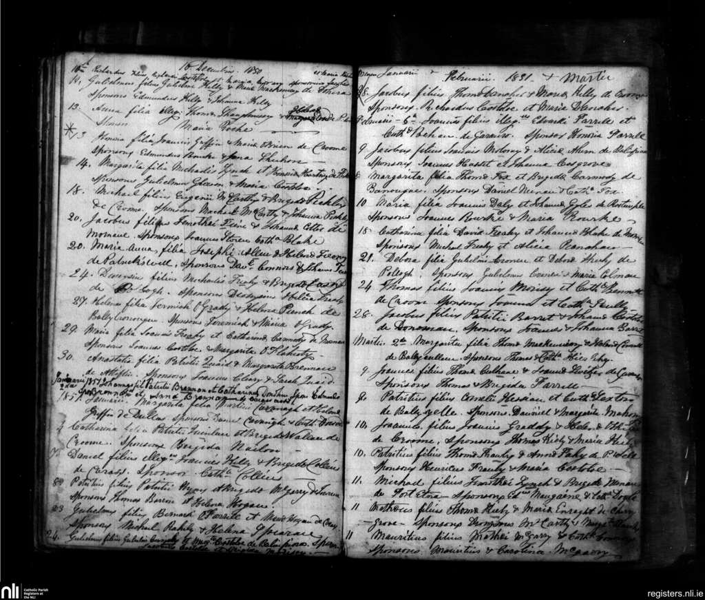 Croom; County of Limerick; Diocese of Limerick. Baptisms, Dec. 1850 to Mar. 1851