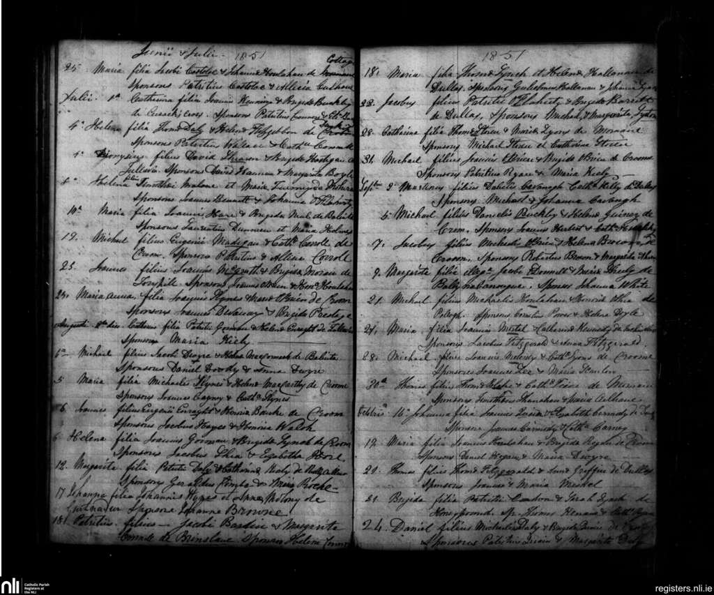 Croom; County of Limerick; Diocese of Limerick. Baptisms, June 1851 to Oct. 1851