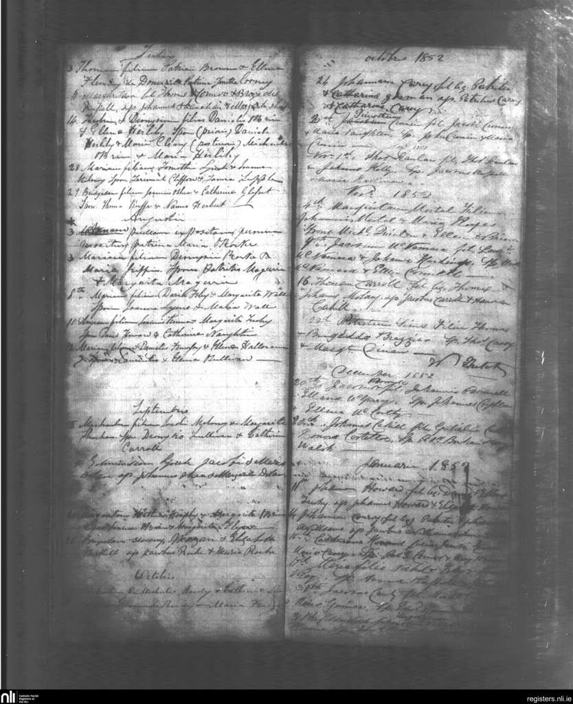 Effin and Garrienderk; County of Limerick; Diocese of Limerick. Baptisms, July 1852 to Jan. 1853