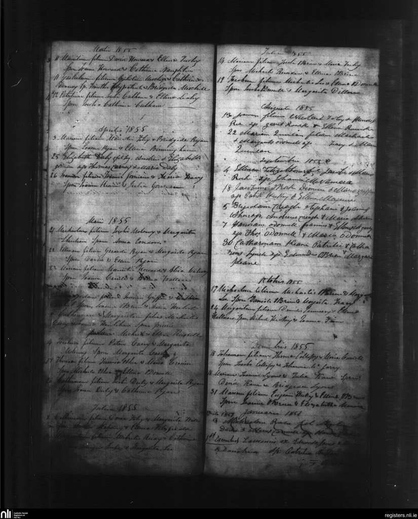 Effin and Garrienderk; County of Limerick; Diocese of Limerick. Baptisms, Mar. 1855 to Jan. 1856