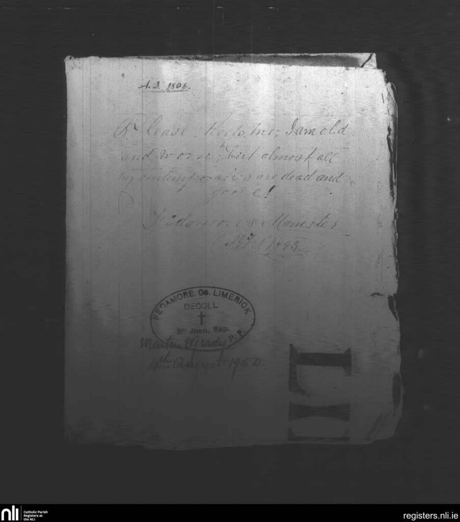Fedamore; County of Limerick; Diocese of Limerick. Baptisms, Marriages