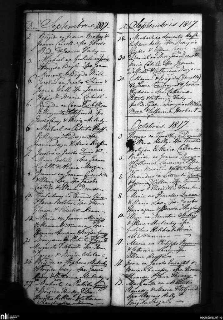 Fedamore; County of Limerick; Diocese of Limerick. Baptisms, Sep. 1817 to Oct. 1817