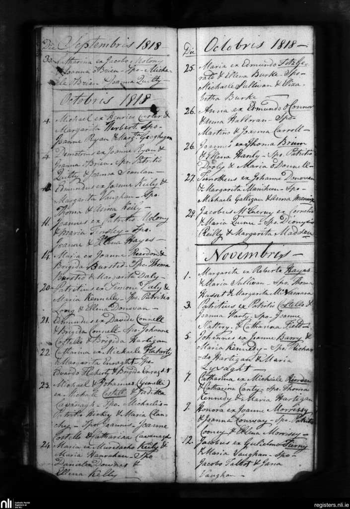 Fedamore; County of Limerick; Diocese of Limerick. Baptisms, Sep. 1818 to Nov. 1818