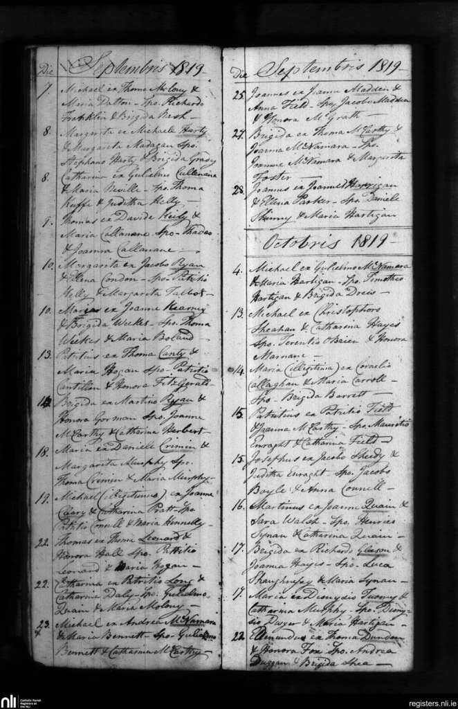 Fedamore; County of Limerick; Diocese of Limerick. Baptisms, Sep. 1819 to Oct. 1819