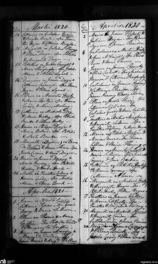 Fedamore; County of Limerick; Diocese of Limerick. Baptisms, Mar. 1820 to Apr. 1820