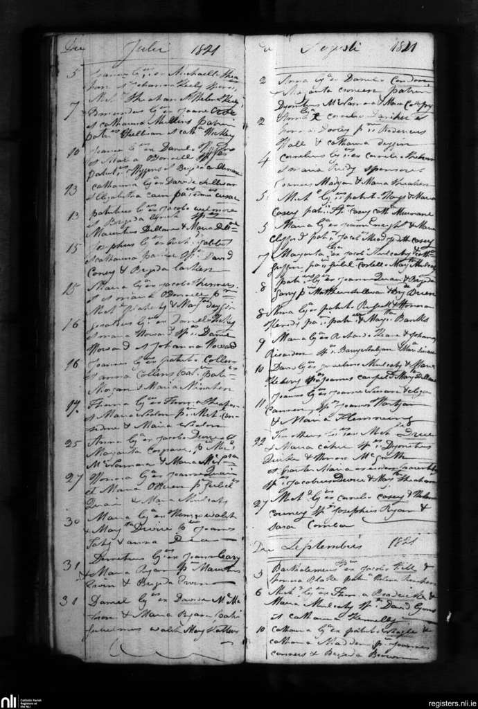 Fedamore; County of Limerick; Diocese of Limerick. Baptisms, July 1821 to Sep. 1821