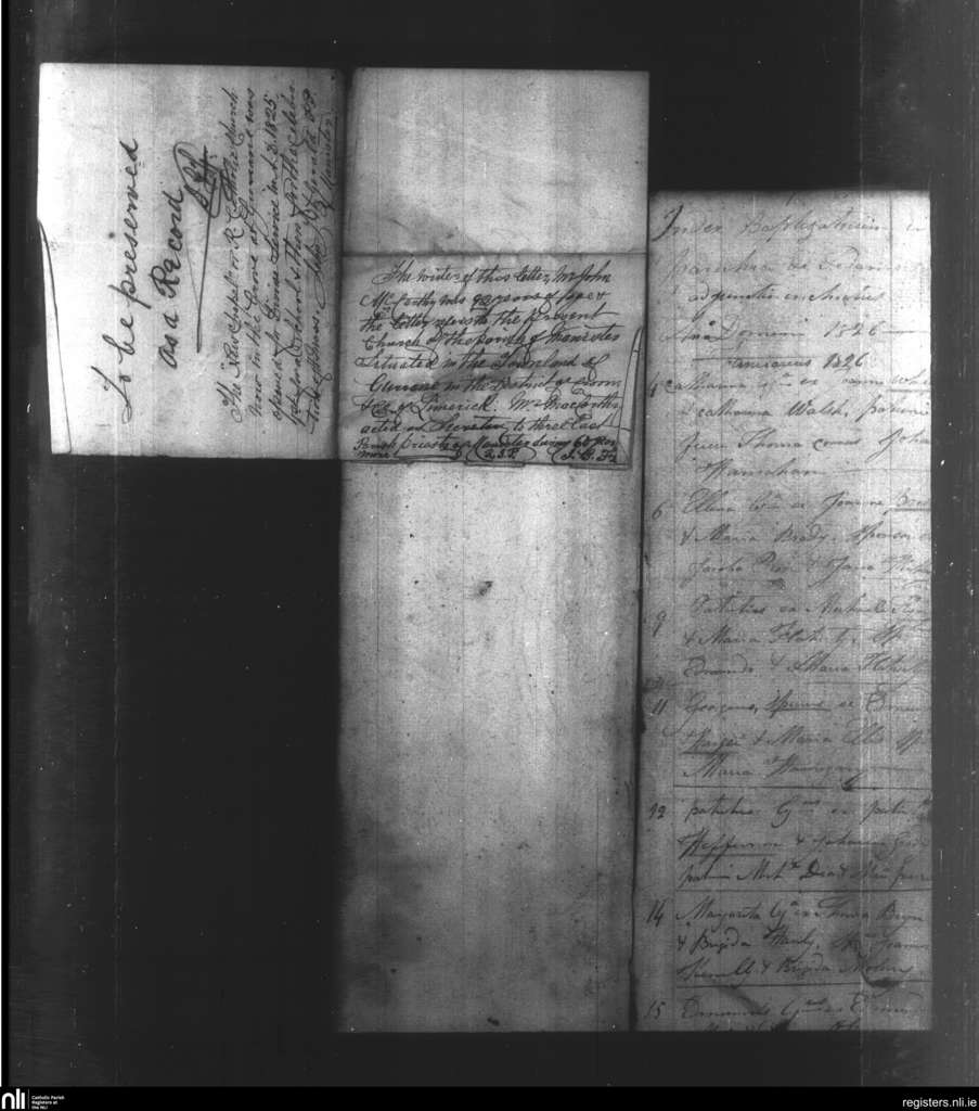 Fedamore; County of Limerick; Diocese of Limerick. Baptisms, Jan. 1826