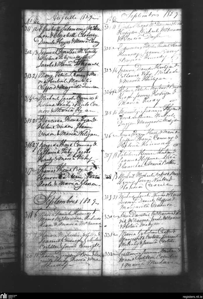 Fedamore; County of Limerick; Diocese of Limerick. Baptisms, Aug. 1829 to Sep. 1829