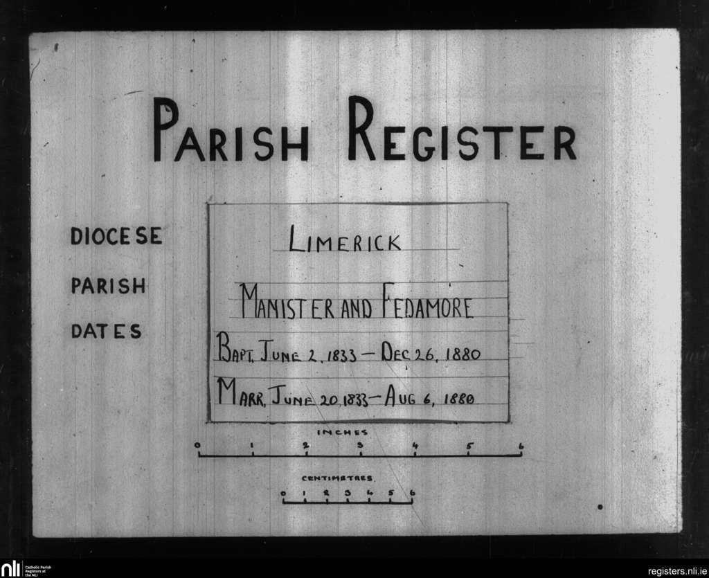 Fedamore; County of Limerick; Diocese of Limerick. Baptisms, Marriages