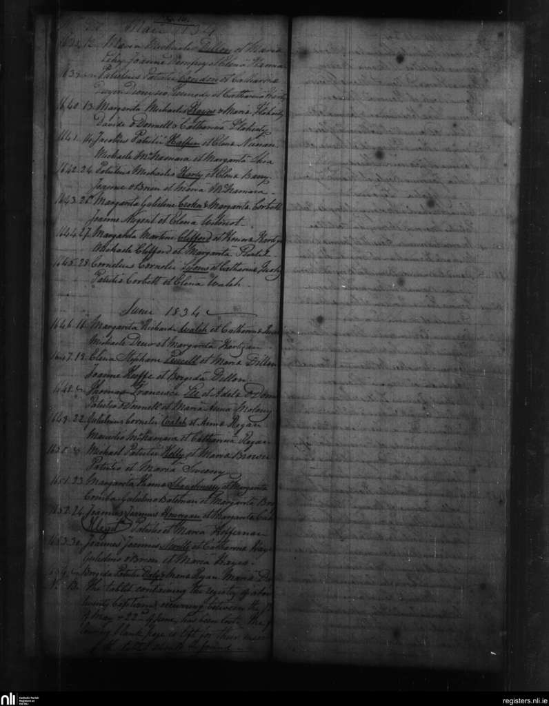 Fedamore; County of Limerick; Diocese of Limerick. Baptisms, May 1834 to June 1834