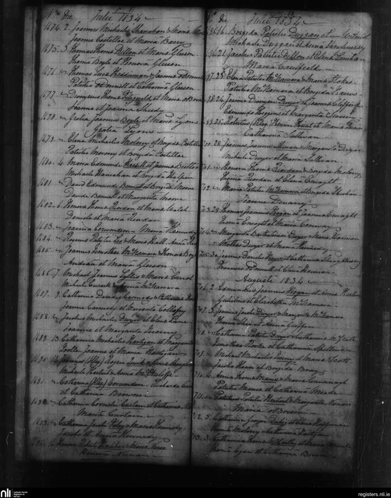 Fedamore; County of Limerick; Diocese of Limerick. Baptisms, July 1834