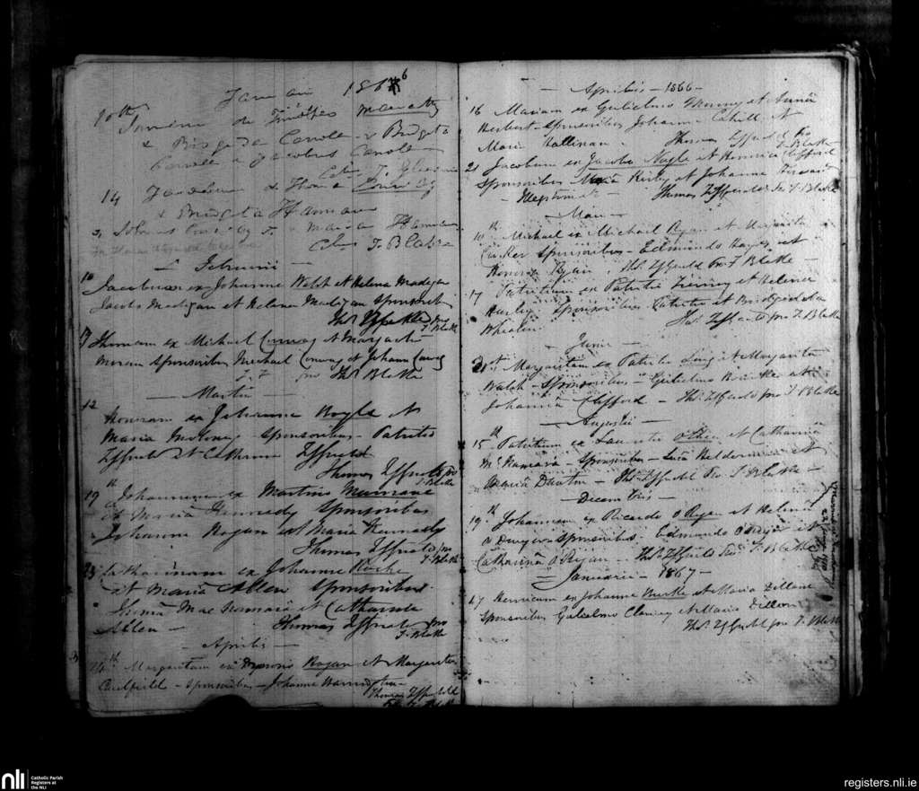 Fedamore; County of Limerick; Diocese of Limerick. Baptisms, Jan. 1866 to Jan. 1867