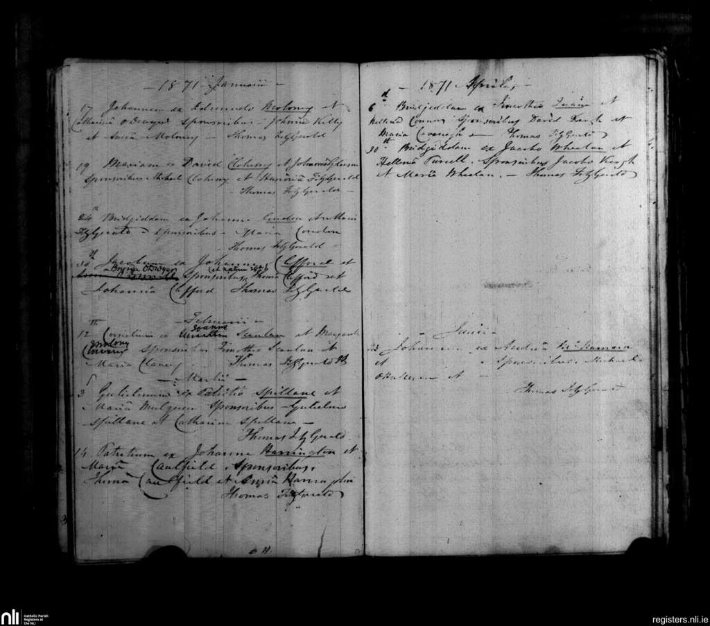 Fedamore; County of Limerick; Diocese of Limerick. Baptisms, Jan. 1871 to June 1871