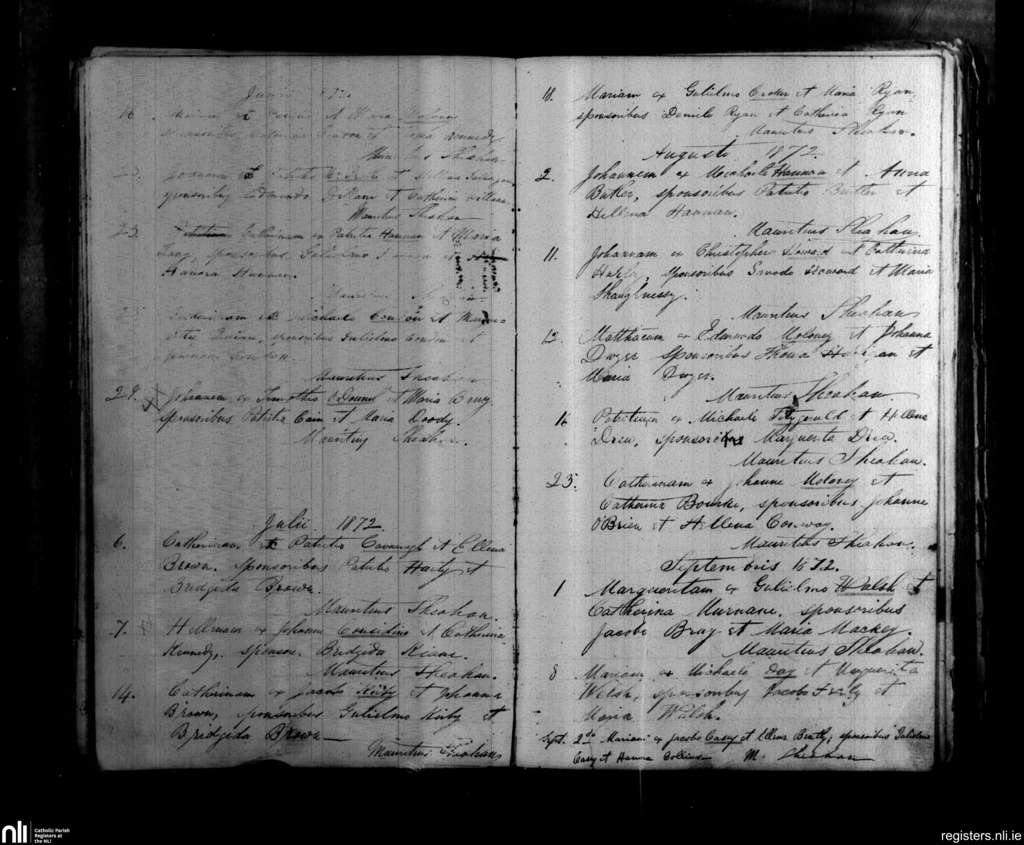 Fedamore; County of Limerick; Diocese of Limerick. Baptisms, June 1872 to Sep. 1872