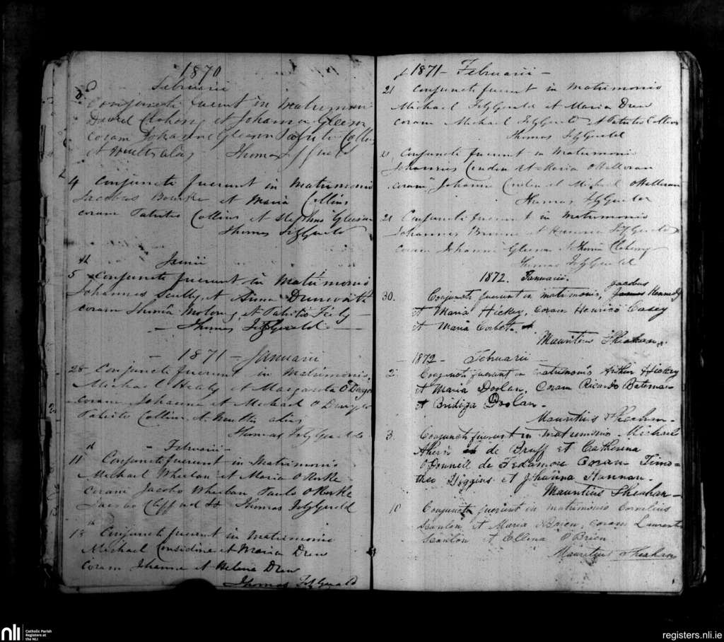 Fedamore; County of Limerick; Diocese of Limerick. Marriages, Feb. 1870 to Feb. 1872