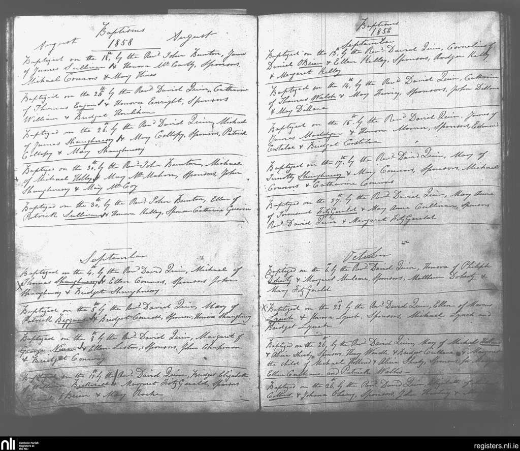 Glin; County of Limerick; Diocese of Limerick. Baptisms, Aug. 1858 to Oct. 1858