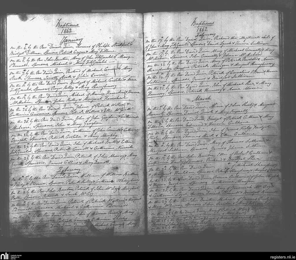 Glin; County of Limerick; Diocese of Limerick. Baptisms, Jan. 1862 to Mar. 1862