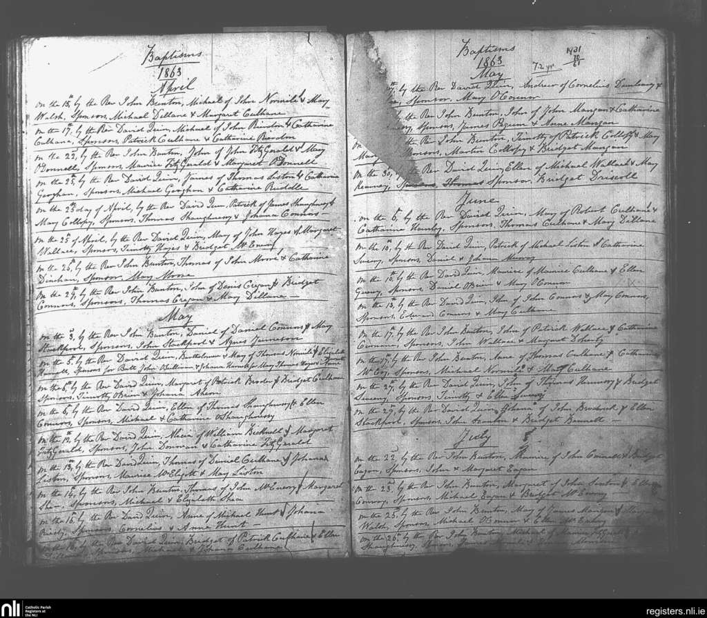 Glin; County of Limerick; Diocese of Limerick. Baptisms, Apr. 1863 to July 1863