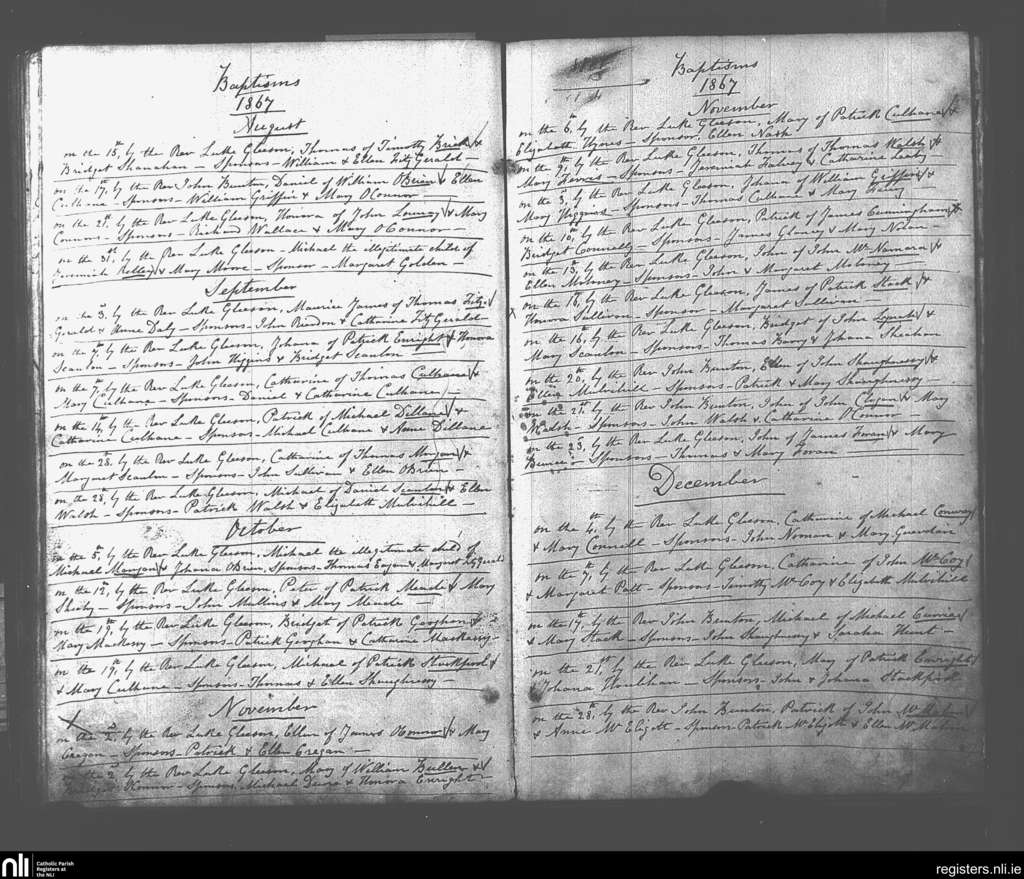 Glin; County of Limerick; Diocese of Limerick. Baptisms, Aug. 1867 to Dec. 1867
