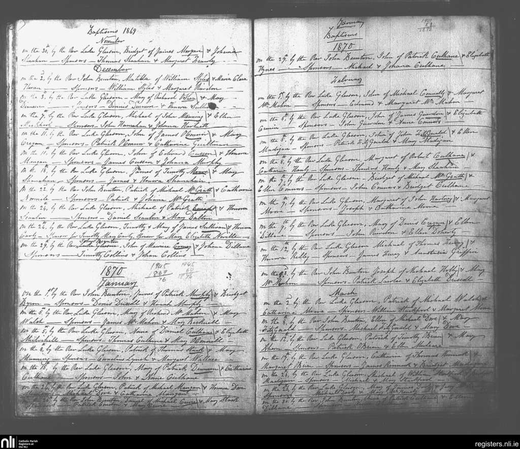 Glin; County of Limerick; Diocese of Limerick. Baptisms, Nov. 1869 to Mar. 1870