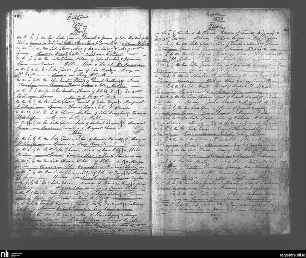 Glin; County of Limerick; Diocese of Limerick. Baptisms, Apr. 1870 to June 1870