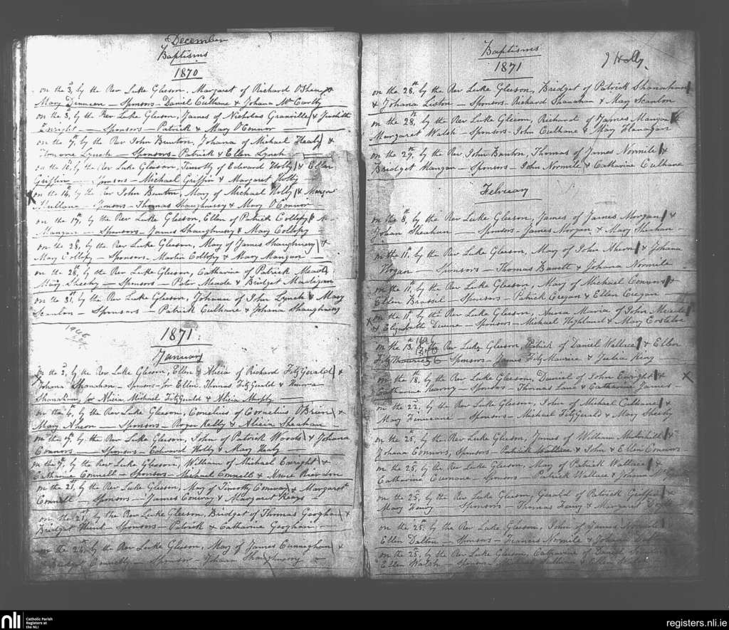 Glin; Contae Limerick; Deoise Limerick. Baptisms, Noll. 1870 go dtí an Feabh. 1871