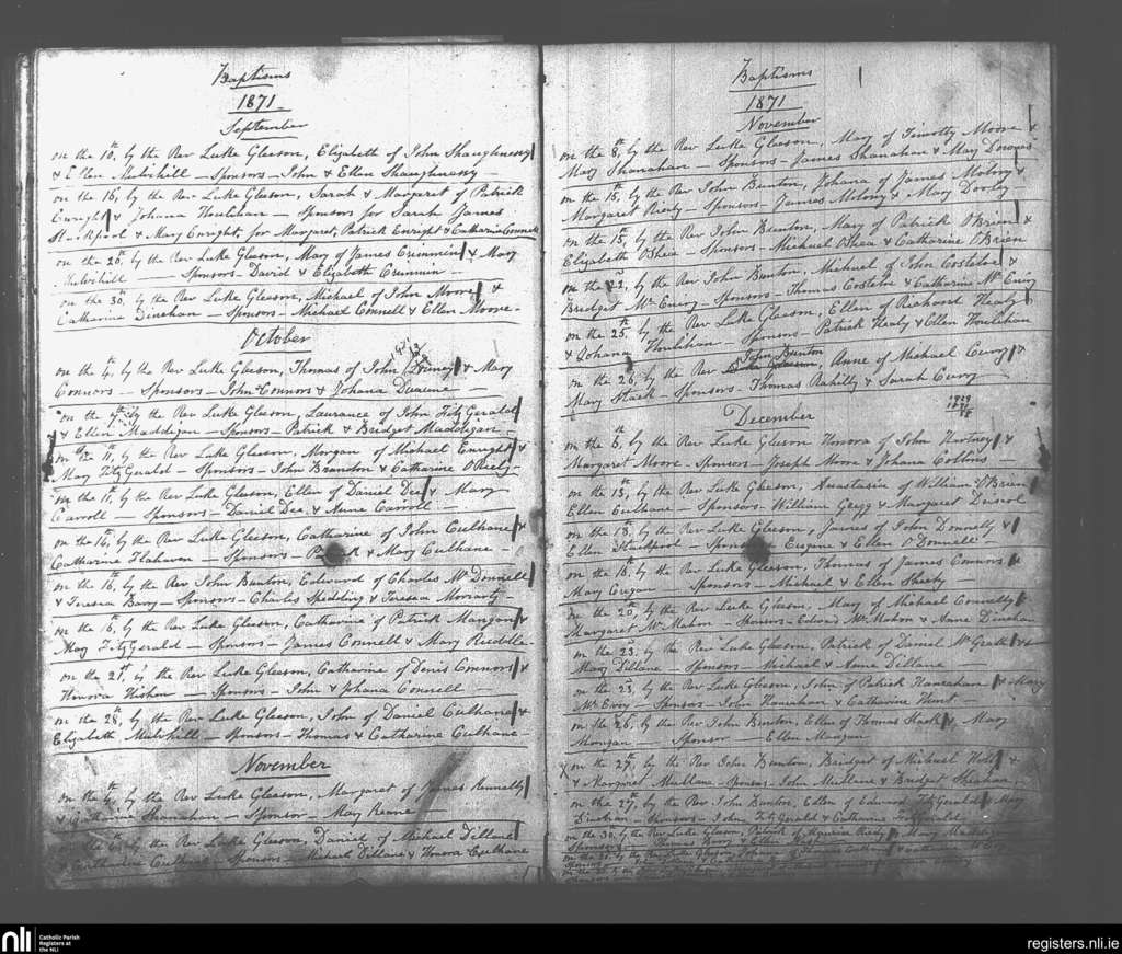 Glin; County of Limerick; Diocese of Limerick. Baptisms, Sep. 1871 to Dec. 1871
