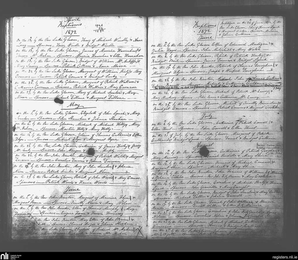 Glin; County of Limerick; Diocese of Limerick. Baptisms, Marriages, Apr. 1872 to Feb. 1921