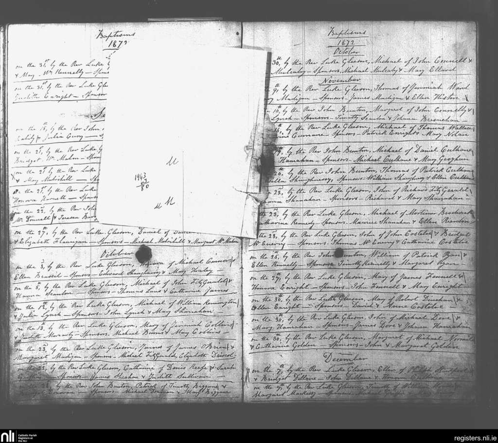 Glin; County of Limerick; Diocese of Limerick. Baptisms, Aug. 1872 to Dec. 1872